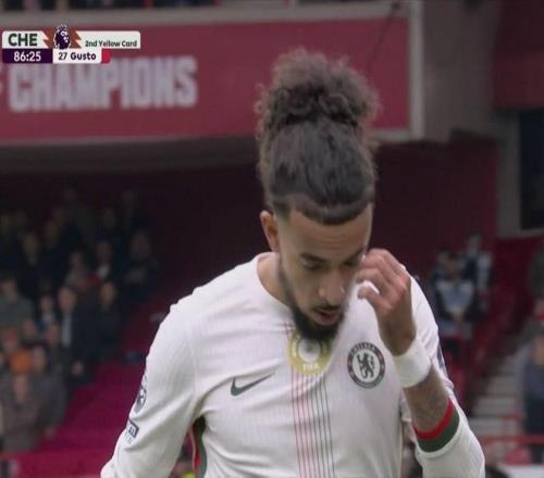 对阵诺丁汉森林 古斯托染红