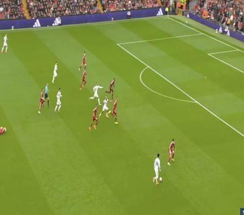 利物浦防线漏洞百出,布鲁诺-费尔南德斯在禁区内完成了一次迟来的跑位,接应传中射门,可惜未能得分。
